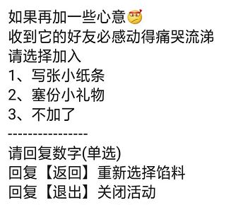 3、选择制作月饼的蜀友,按照门叔引导回复相应数字选择月饼皮+月饼口味;