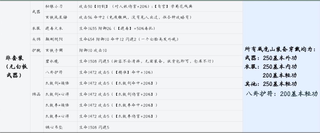 鞋子、饰品、戒指穿戴需要230基本轻功
