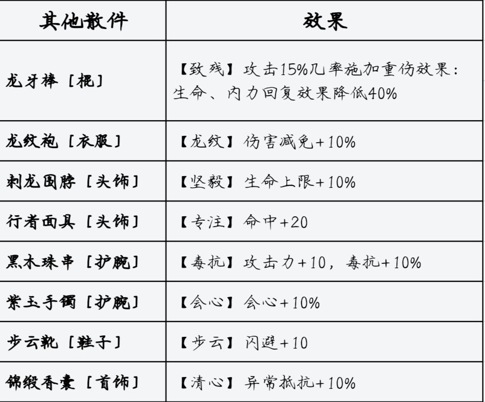⭐前期:素云袍、紫金发簪、袖里乾坤、雪地靴、八卦护符、板玉戒指