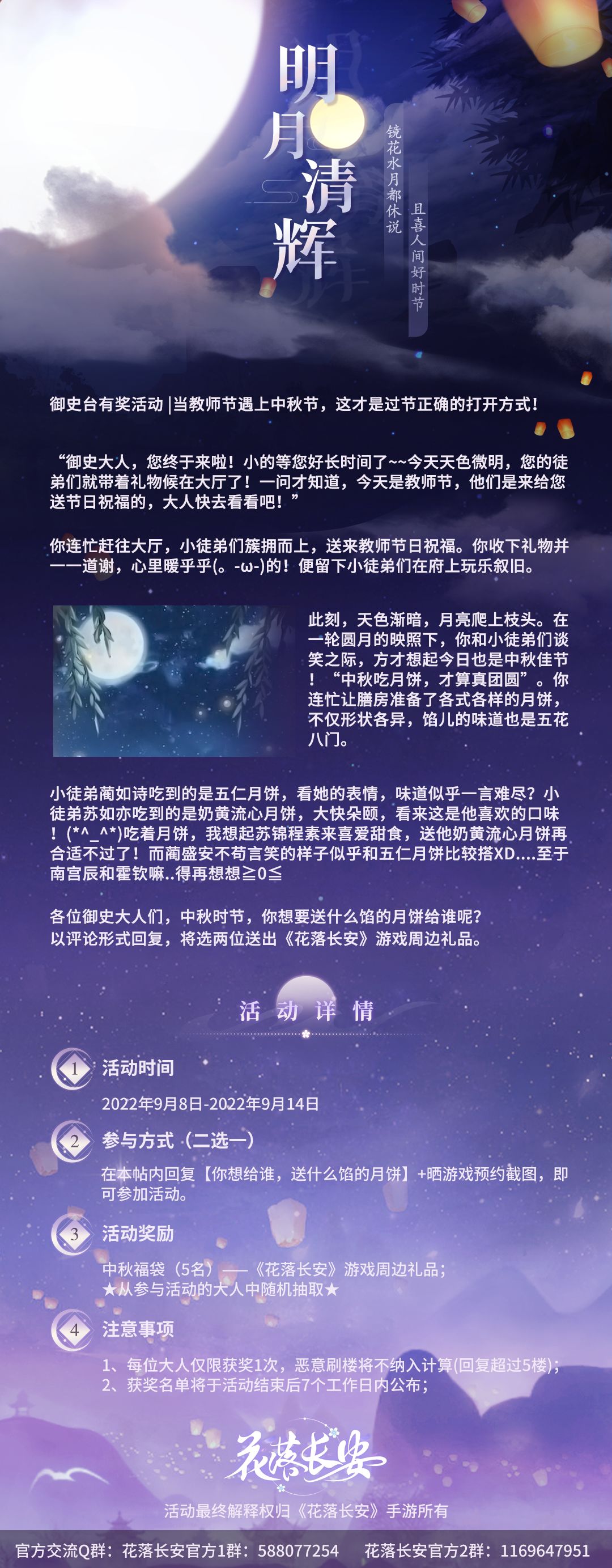 《花落长安》中秋活动来啦!快来分享你喜欢的月饼口味吧~