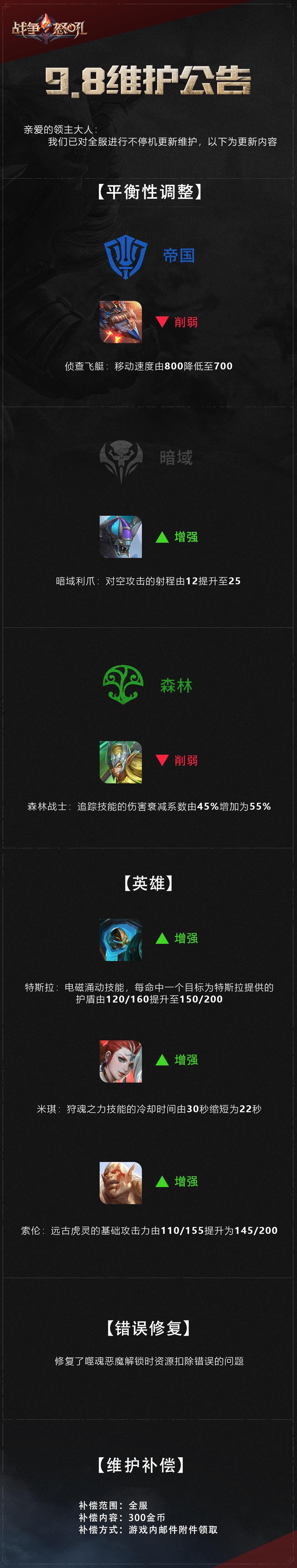 【更新公告】《战争怒吼》9月8日平衡性调整