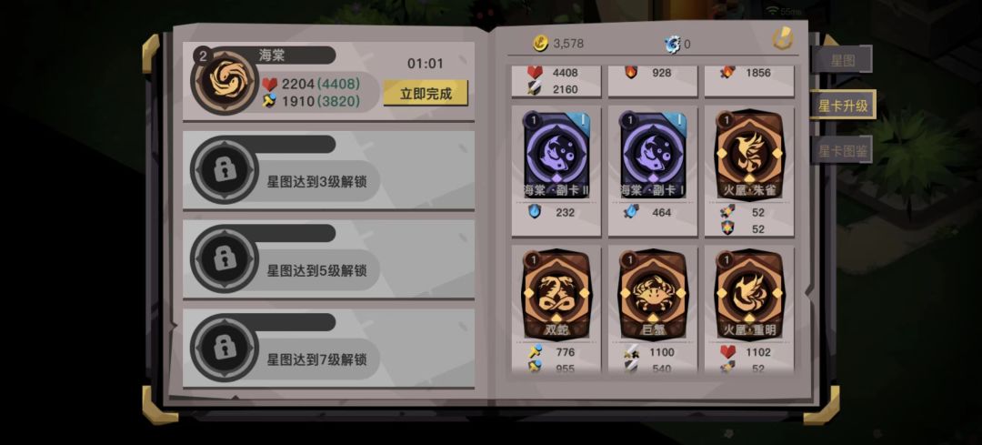 今天更新庄园,关于星辰卡的放置