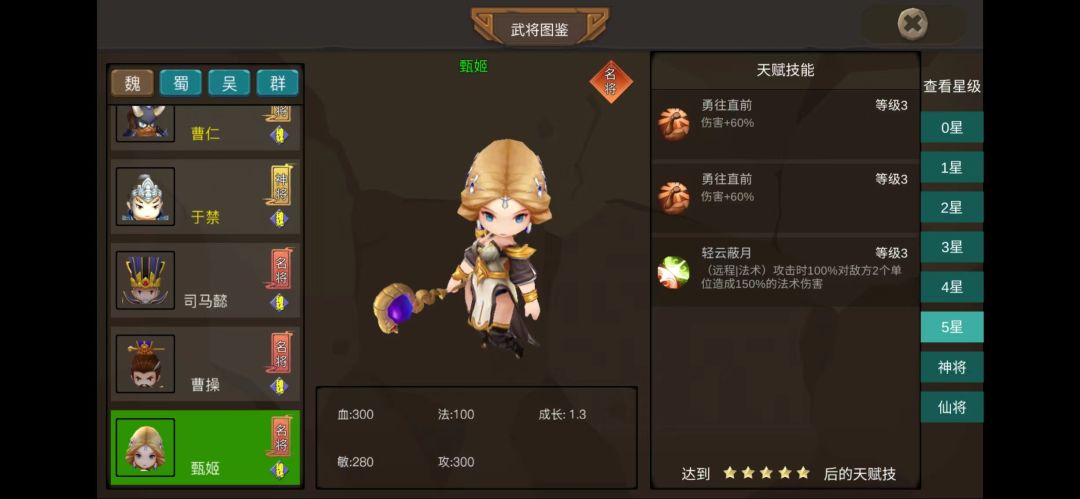 缺点:不能白嫖,5星状态下甚至不如白给的蔡蔡,也不值得升神将仙将