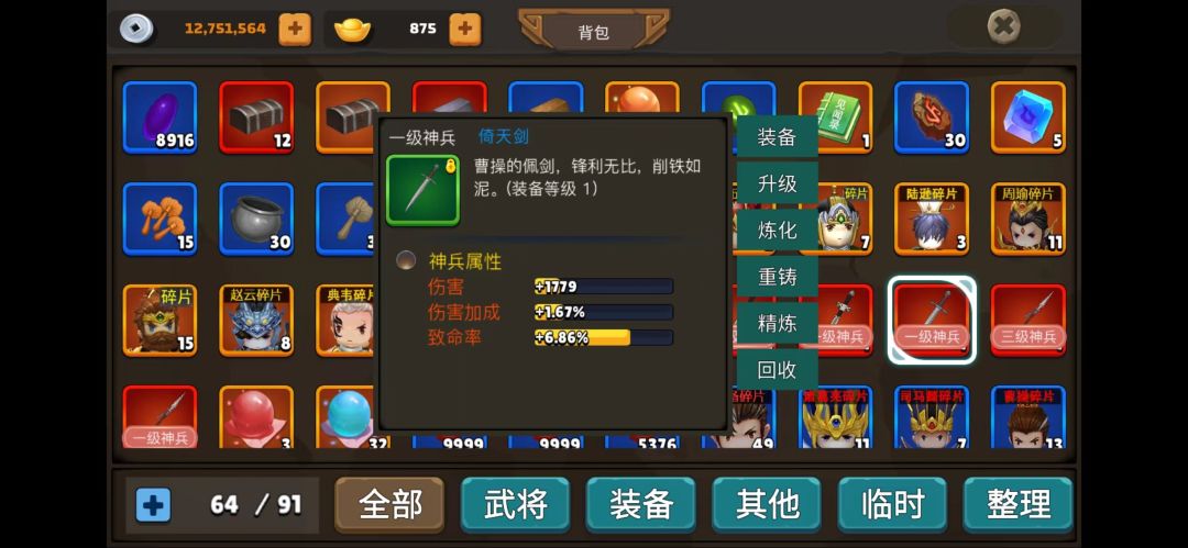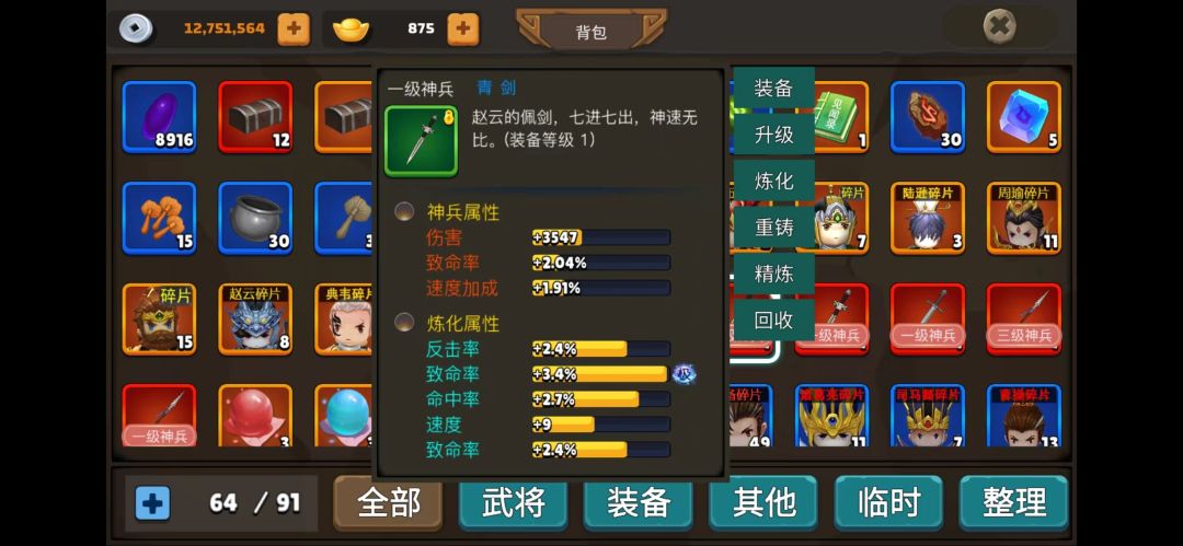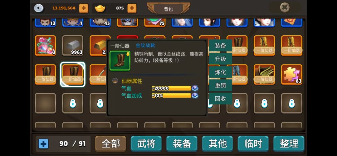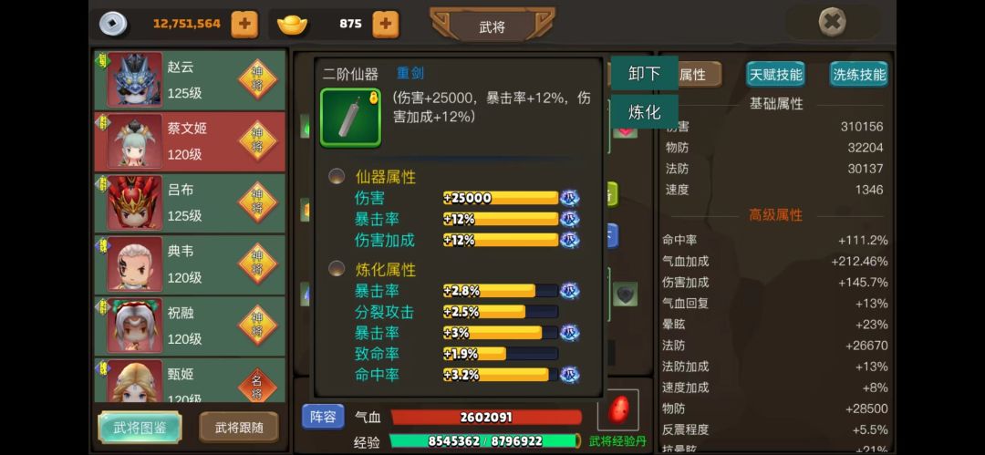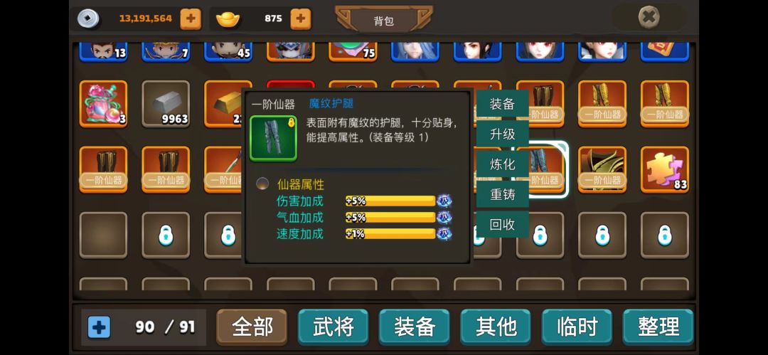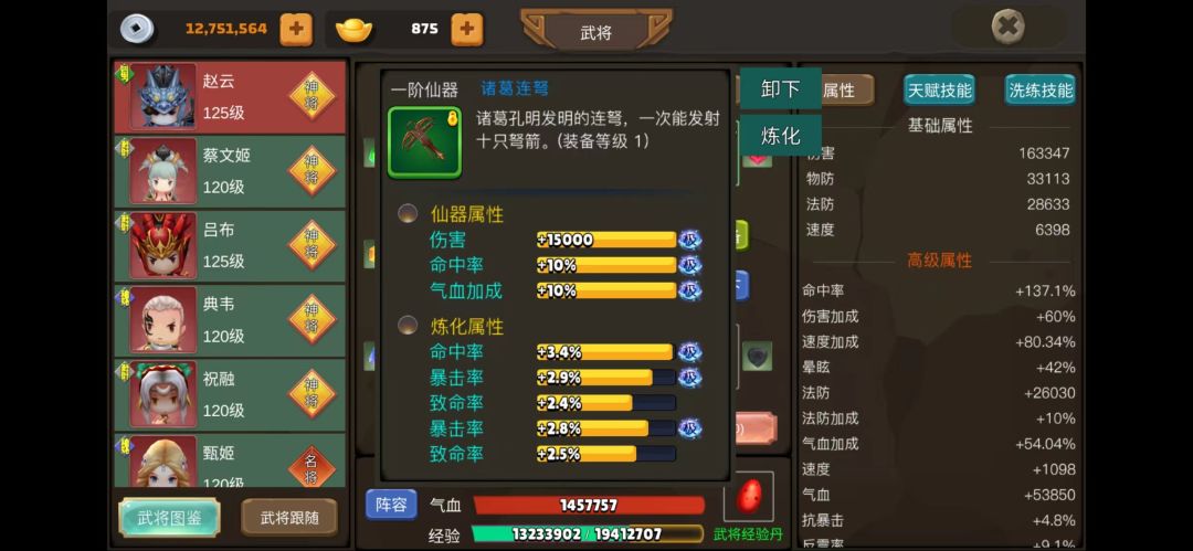 ⭐️仙器:仙器是武将属性最最最主要的组成部分,它是神兵的升级版,而且!仙器升级不会失败并且必定为满属性!满属性!满属性!接下来仍然是依次介绍!