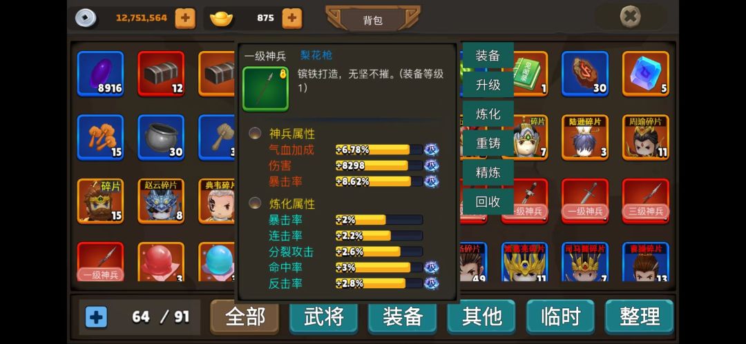 目前游戏中的装备数量还并不多,所以熟悉游戏之后很容易就知道武将到底需要什么属性!