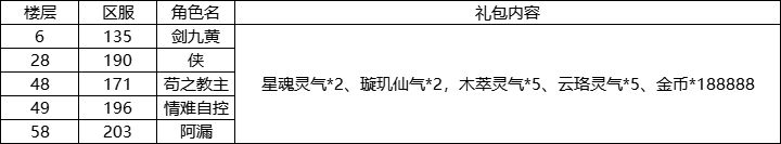 礼包内容:星魂灵气*2、璇玑仙气*2,木萃灵气*5、云珞灵气*5、金币*188888