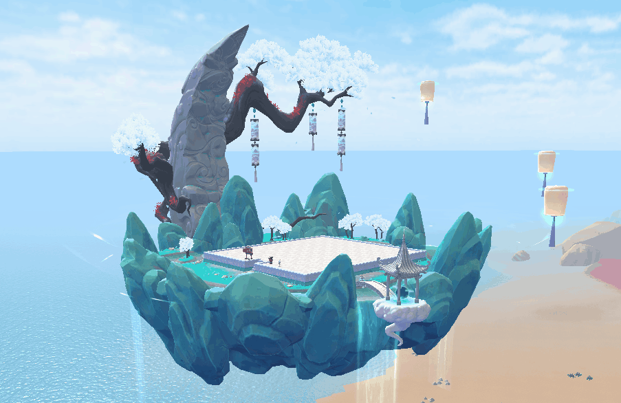 我们全新的浮岛皮肤宛如迷你型号的“思寒宫”