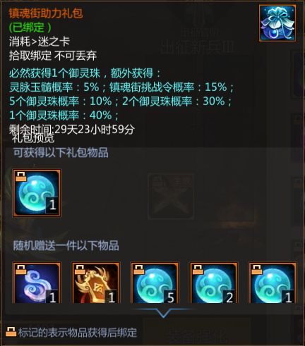 ④镇魂街助力礼包,大家可以获得镇魂行记相关的道具,定价50梦三币,支持绑定梦币购买,期间限购10个。