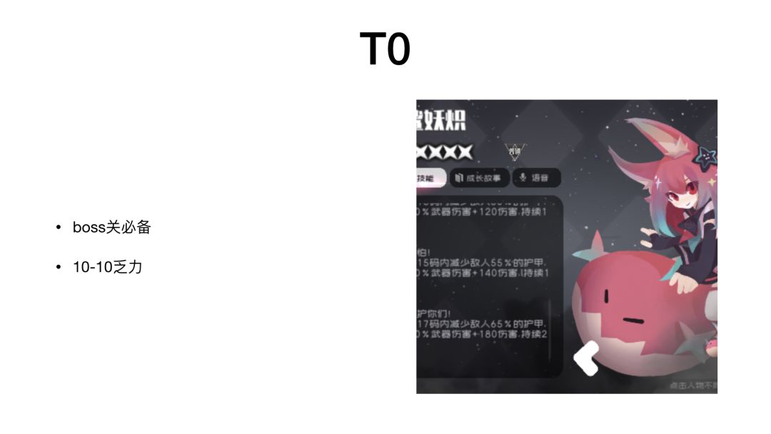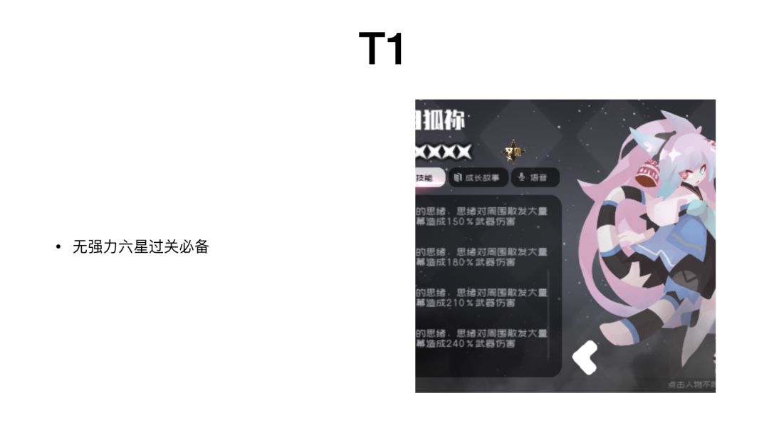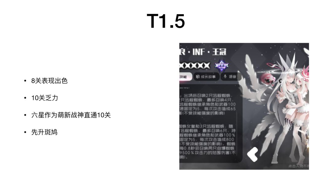 比如像我抽出个栗君看了眼强度榜是t0也有人说厉害养出来也可以用。但我最后升了斑鸠换下栗君直接翻了一倍的游戏体验