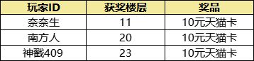 随机抽取3名正确参与活动的玩家,赠送10元天猫卡一份;
