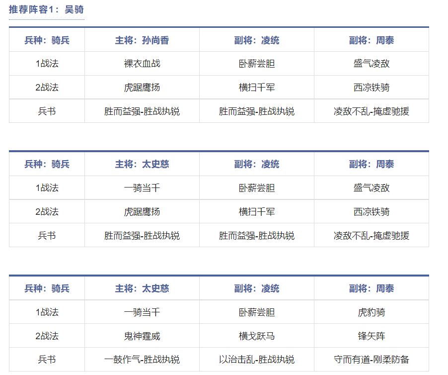 2、常见阵容:吴骑,三势吕;