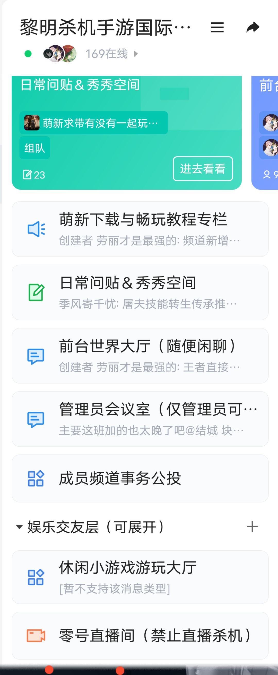[大神攻略]频道内有屠皇和人皇若干,会不定期发车带带新人,每一个人来到频道的大家庭都是杀机手游欢迎的(由于不同服之间人群时差有点大所以国人玩的时候有时间空白大概几分钟匹配不到人频道屠夫、求生者一起发车单排双排三排多排甚至内战也好就能逐步改变这个现状)还有互动空间会不断的分享高段位玩家对人物的分析。