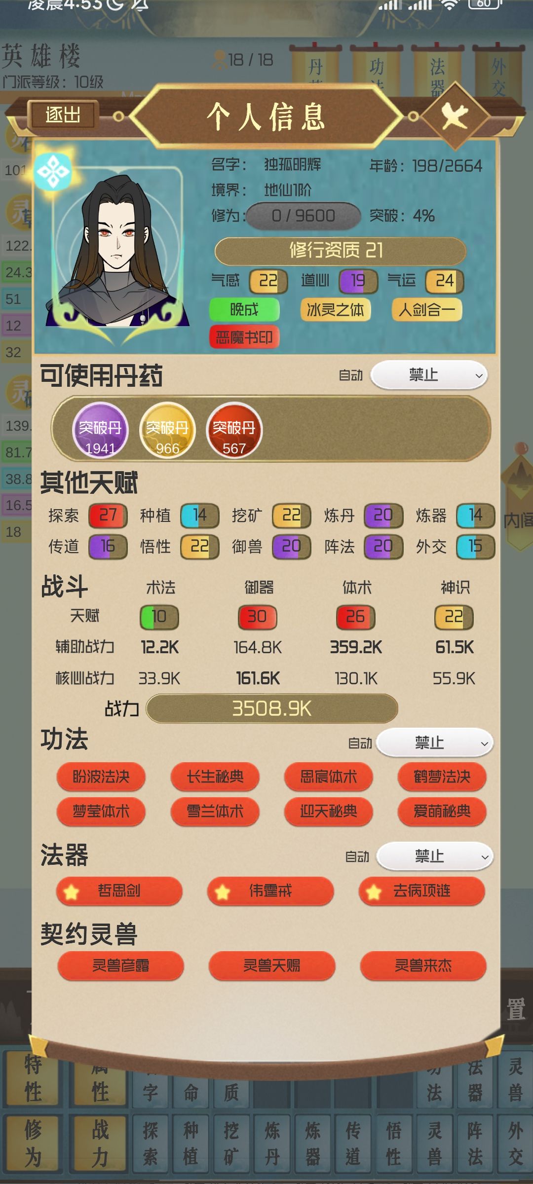 (图片:独孤明辉开局属性及突破丹)