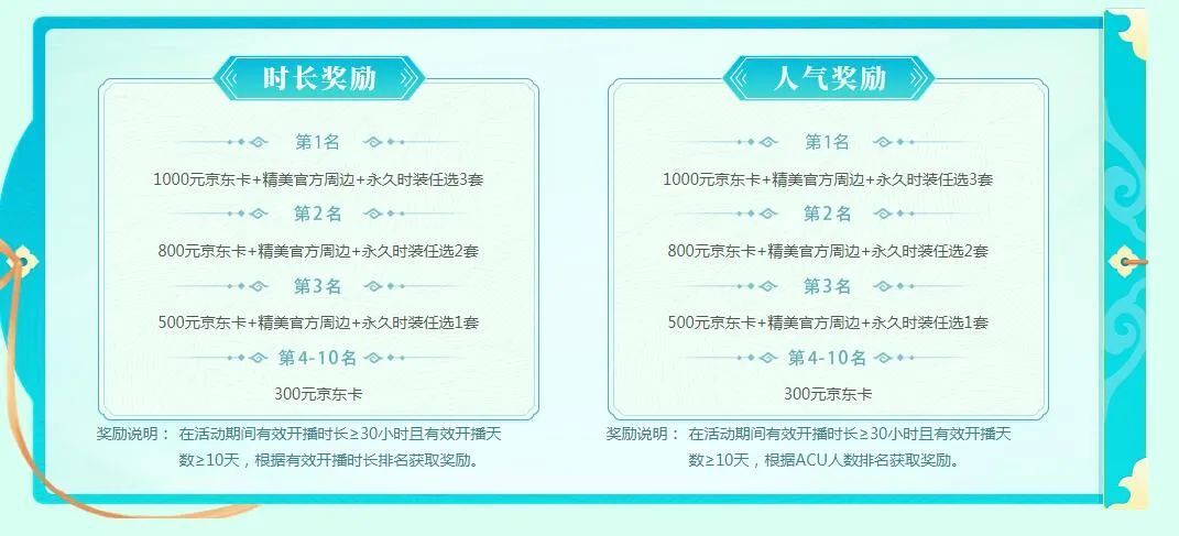 还有一种是人气奖励,有效开播时长≥30小时且有效开播天数≥10天,根据ACU人数排名可获得以下奖励:▼