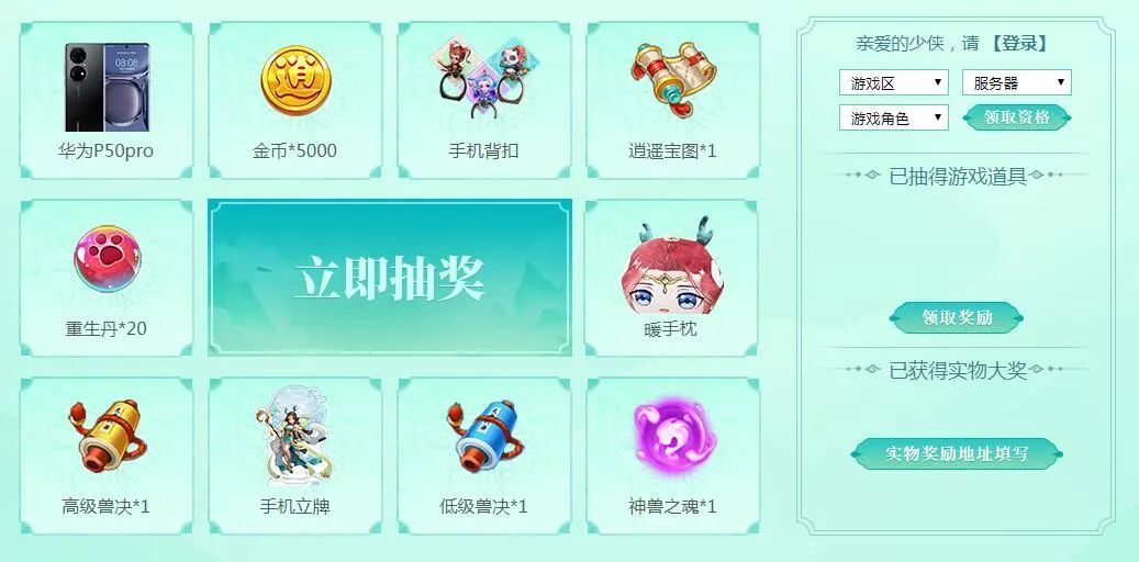 只要你的账号下角色达到60/65/70/75级时都可以分别领取1/2/3/5次抽奖次数;之后再在官网活动页中进行幸运转盘抽奖,有机会抽中各种游戏道具以及精美周边,运气好的话甚至还能抽中华为P50pro手机哦!