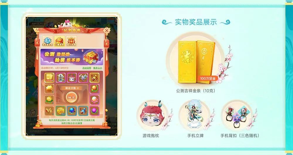奖品包括精美游戏周边、超值游戏道具等等,更有10G万足金吉祥金条作为终极大奖,每个新开服务器必会送出一根!不知道是哪几位幸运儿能将金条领回家呢?