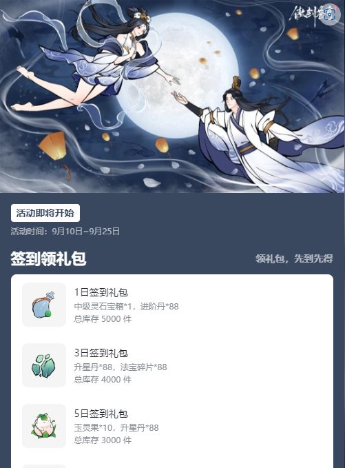 活动三:【共赏蝉月】在9月10日-9月15日派送月饼,将有机会获得海量奖励,与全服道友一起共同庆贺!