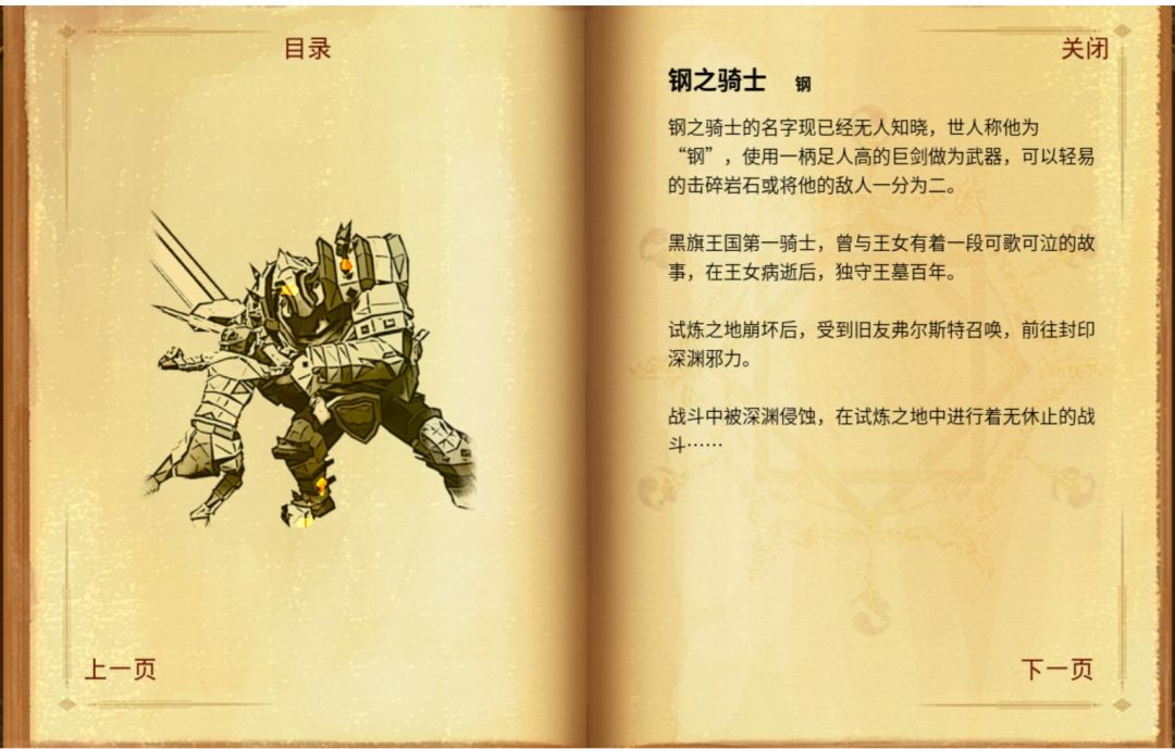 钢之骑士则在火焰骑士的基础上有了数值和攻击手段的增加,尽管同样造成火焰伤害,但掉落套装将会为玩家附带攻击流血效果,两种不同的攻击debuff可以让玩家在走出新手村后有更灵活更丰富的战术选择。