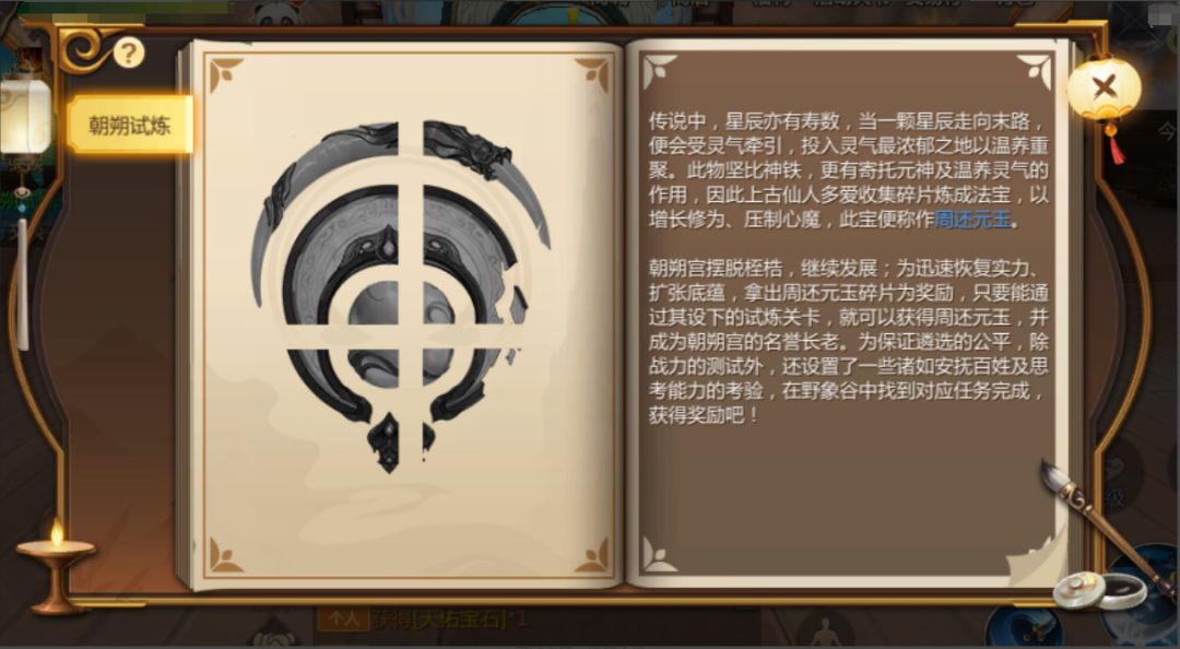 野象谷地图新增试炼考验,需要机智勇敢的玩家在场景内找到对应任务完成,集齐四块周环元玉碎片,便可获得朝朔试炼给予的专属家具,美轮美奂,为仙府增添更多典雅。
