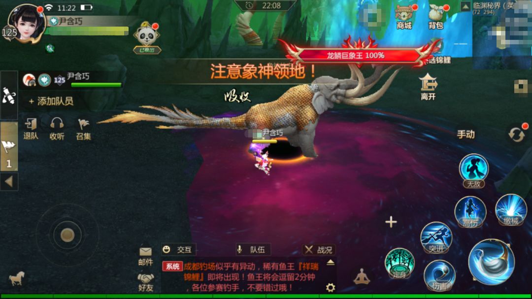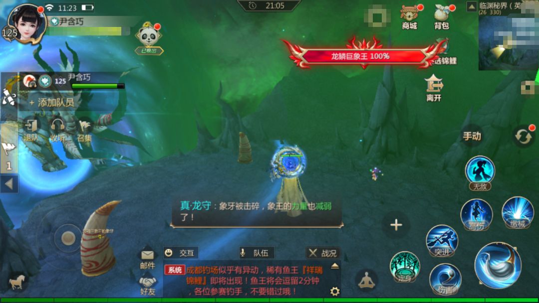 随着125级等级上限的突破,临渊秘界最终BOSS——龙鳞巨象王现身于最深处。原来大家击败的并不是真的龙守,而是巨象王元神伪装的腐化幻象。穿过假龙守身后的传送门,会有一群象灵横冲直撞,需要避开他们冲撞的路径。