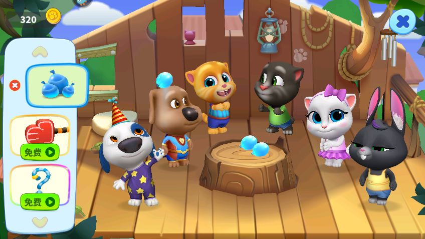 树上六只宠物将会围绕在一个树桩附近一起体验游戏,我们一共可以选择三款游戏进行游玩,而且都是免费的,每次游玩游戏我们都可以获取一定数量的巴士币,消耗巴士币可以让宠物进行旅游,获取金币以及部分道具。