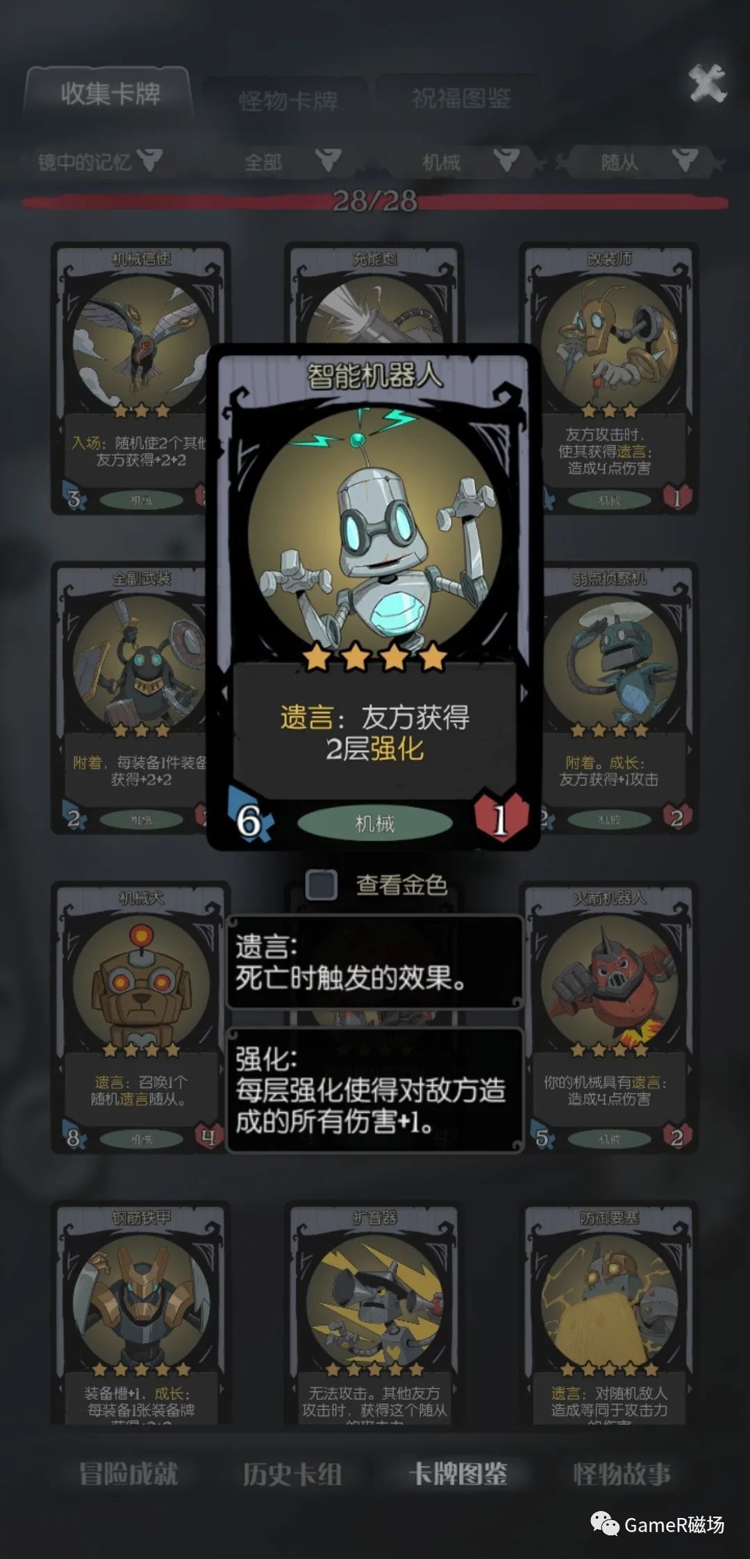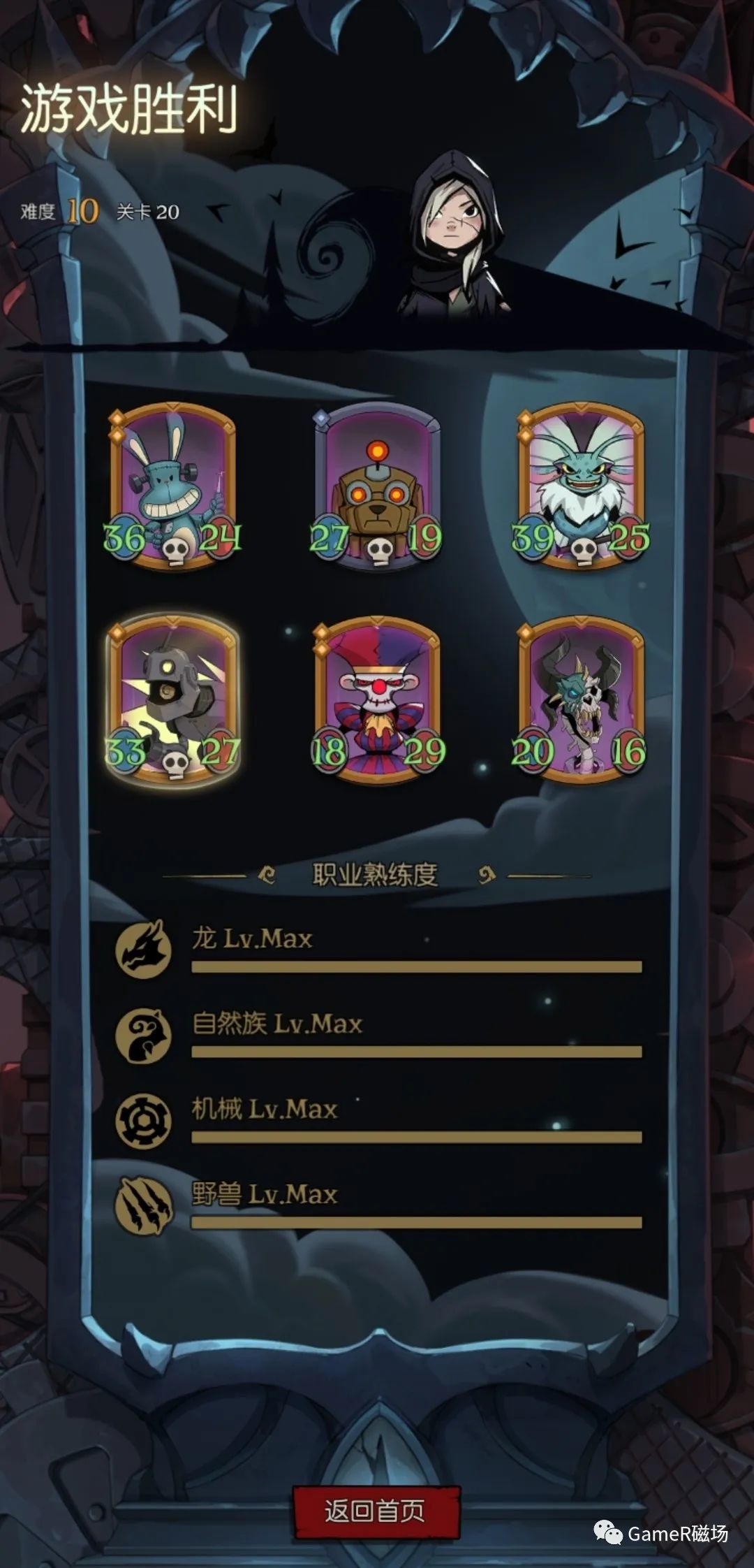 中期时(14关左右)就必须到达六级,并获得六星核心随从:“死灵傀儡师”。注意一点是其他遗言随从都能三连升级就升级,死灵傀儡师则不要求,毕竟六星三连还是很麻烦的。如果真的怕无法通关,可以拿一个“噬魂之龙“或在四级时就拿一个机械的”拾荒者“来当主力。