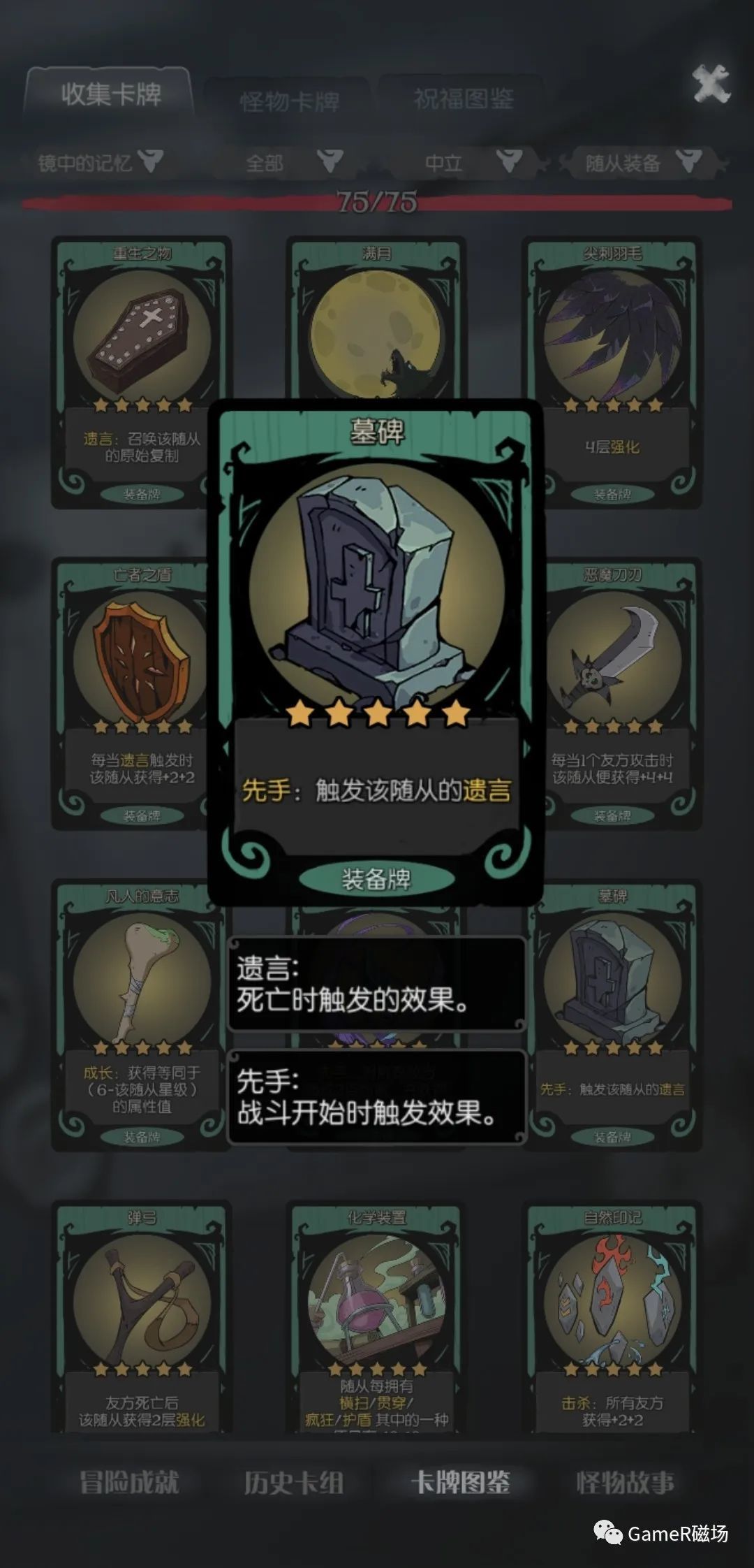 劣势:需要依靠很多装备牌,随机性略强,需要一定运气。主力核心在六星,需要玩家运营能力快速升级。遗言流可分为两个流派来看,一个流派是依靠全体伤害特性的随从来主动触发遗言,另一种则是通过正常死亡触发遗言。第一种嘛对属性要求低,打打低难本够用,但到了高难就非常鸡肋。这边提一句就行了,后面都是正常触发遗言。 通关记录: