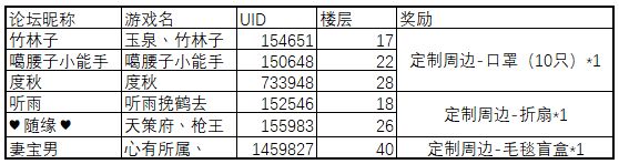 中秋活动开奖啦!恭喜以下少侠获得奖励!
