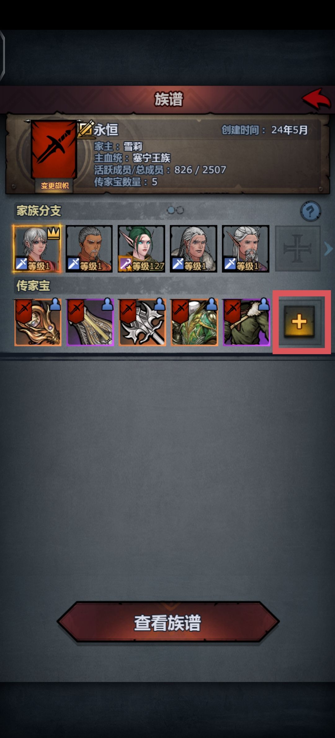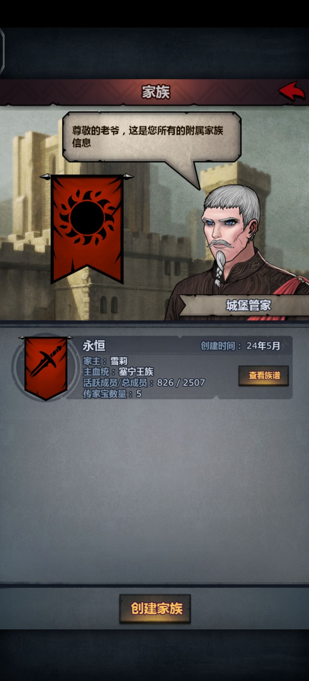 首先要去建立一个家族(只推荐一个家族,因为传家宝不共通,所以会比较伤,不要怕花水晶加位置),然后把嫖到爵位的,且有稳定后代传承人加进去,更高效率的提血。