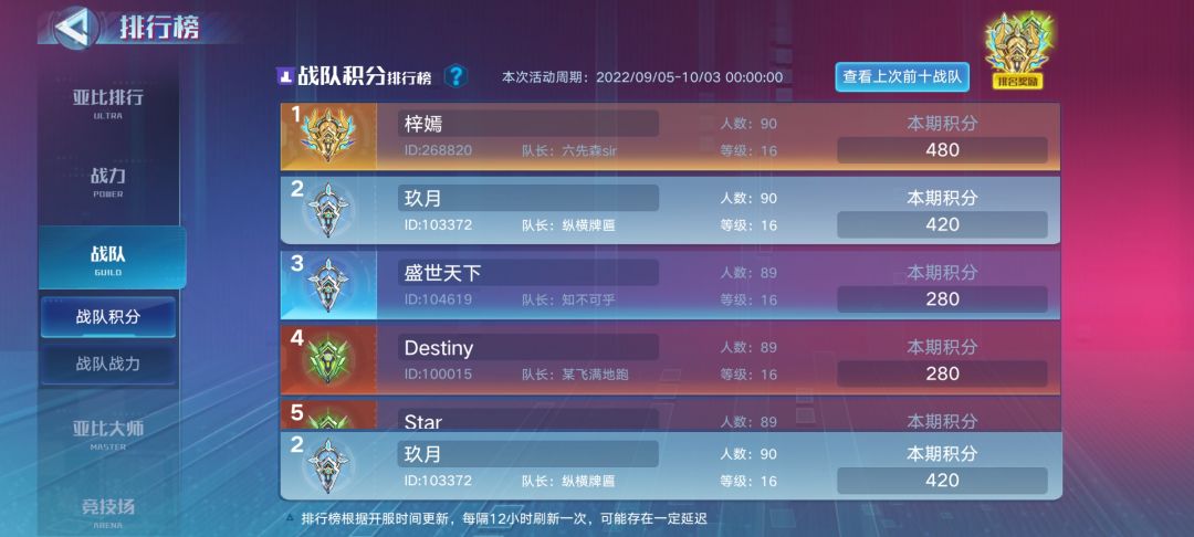 目标:玖月战队积分榜排名稳定前十,冲击前五