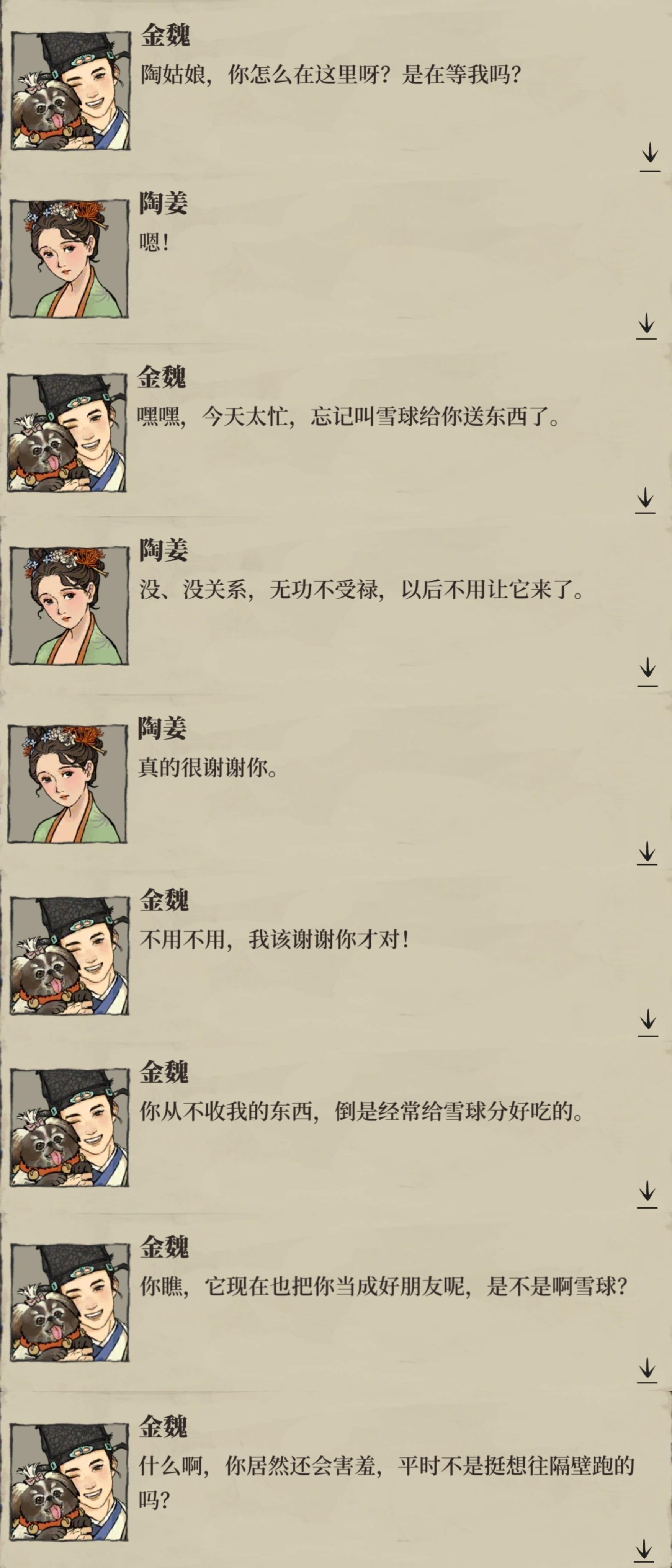 金魏刚将点心袋子拿走,雪球便咬着他衣角向前走去。