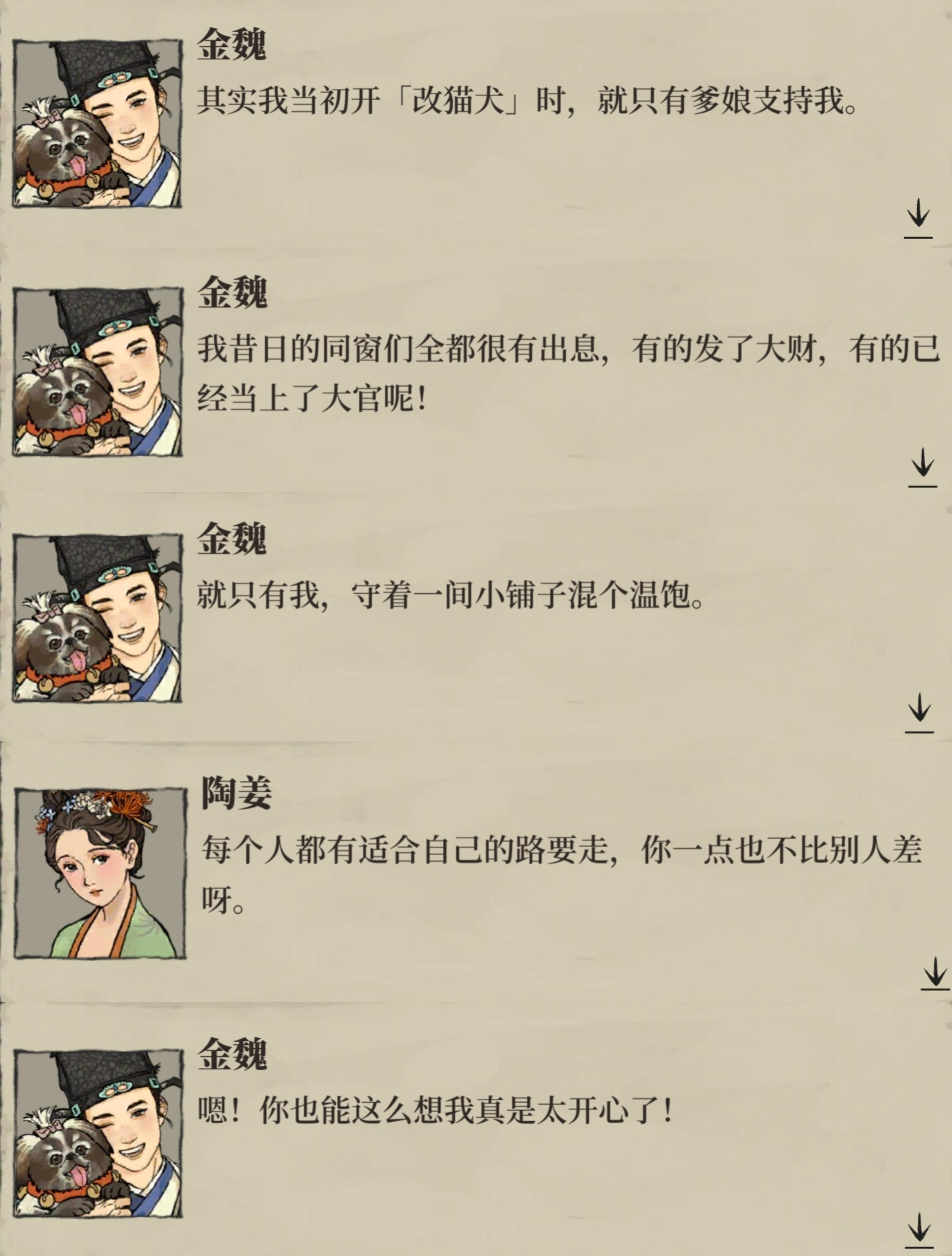 傍晚时分,一只浑身雪白的小狗驮着装着点心的布袋,出现在金魏面前。