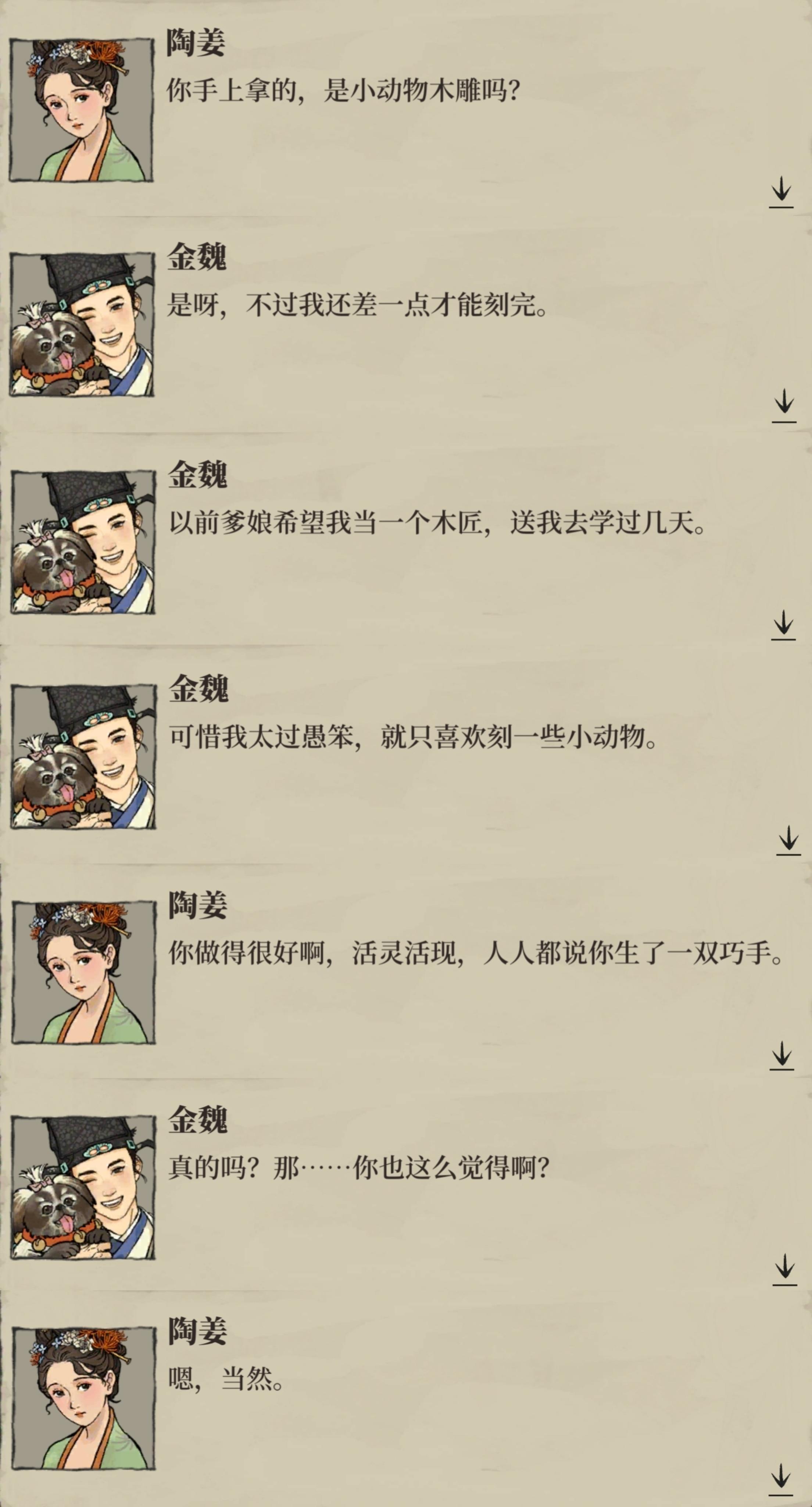 陶姜略有些局促,目光移向别处,发现金魏手上还拿着一只可爱的木雕。