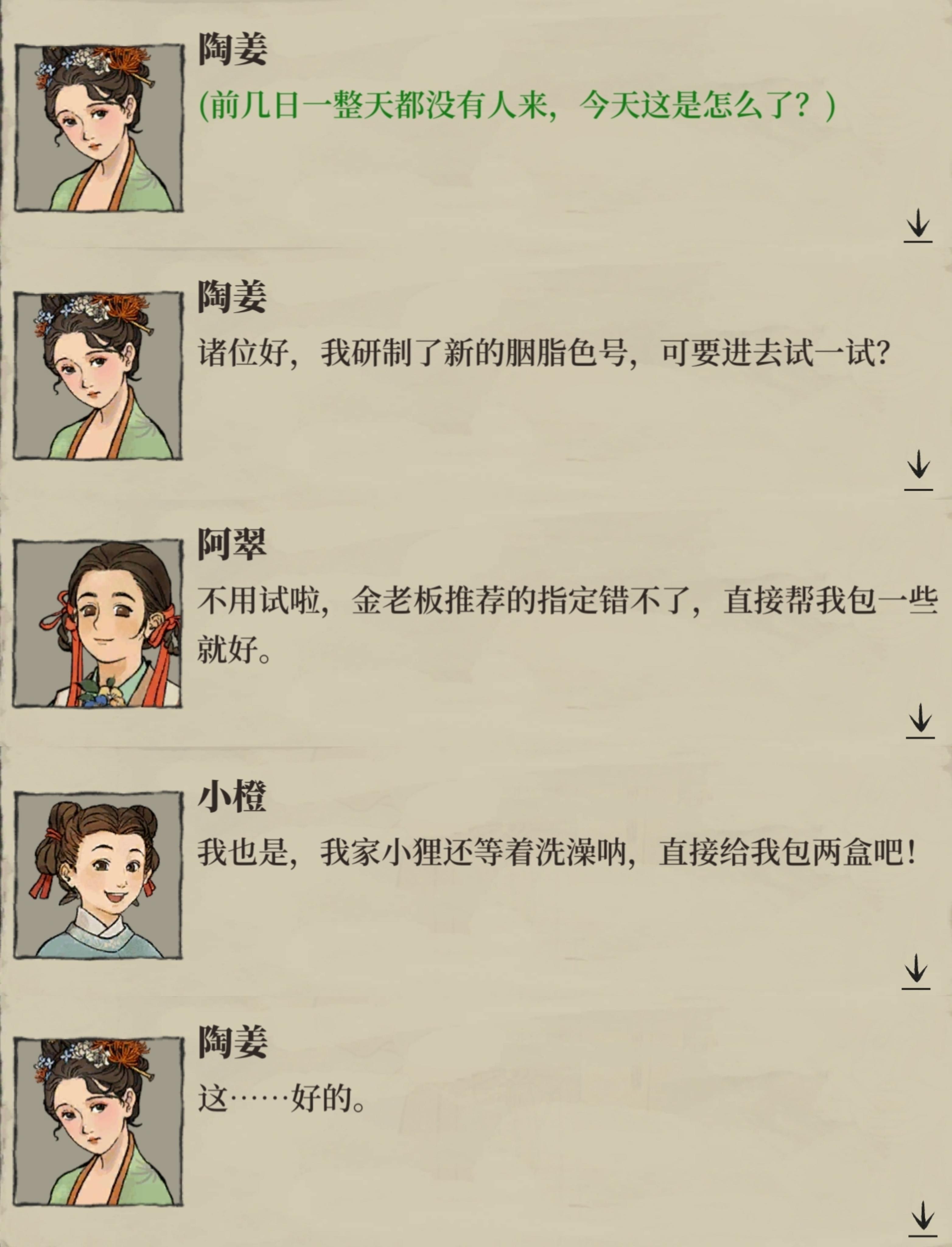 陶姜进屋替几人打包了胭脂。见几位客人出门后都进了隔壁铺子,便跟上去瞧了瞧。