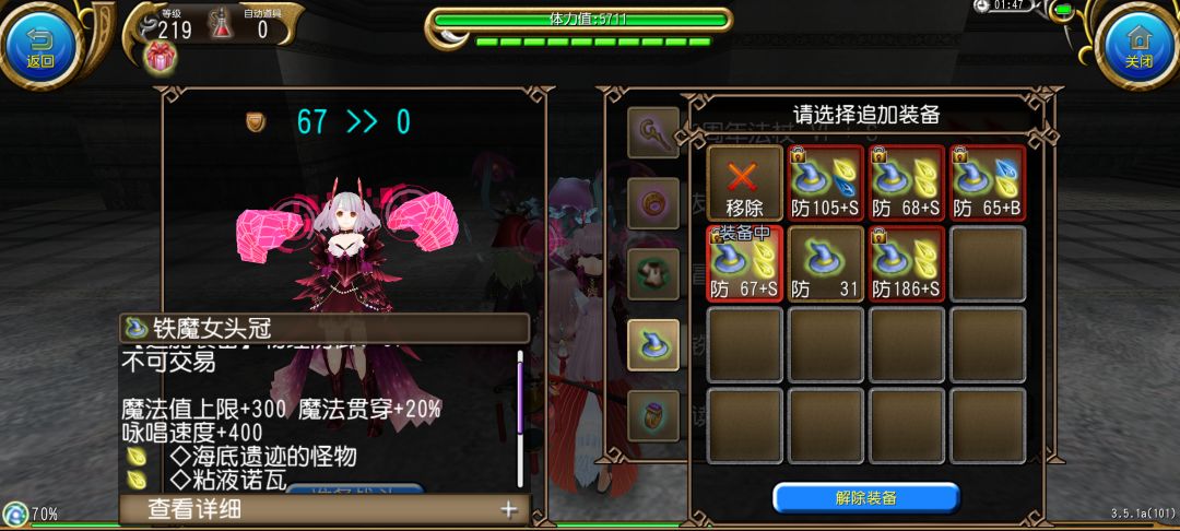 目前算是比较好用的帽子,缺点是不可交易,跟万圣节的头顶魔女帽(海底、甜呐许)相比少了3%魔攻多了200蓝量和1000咏唱