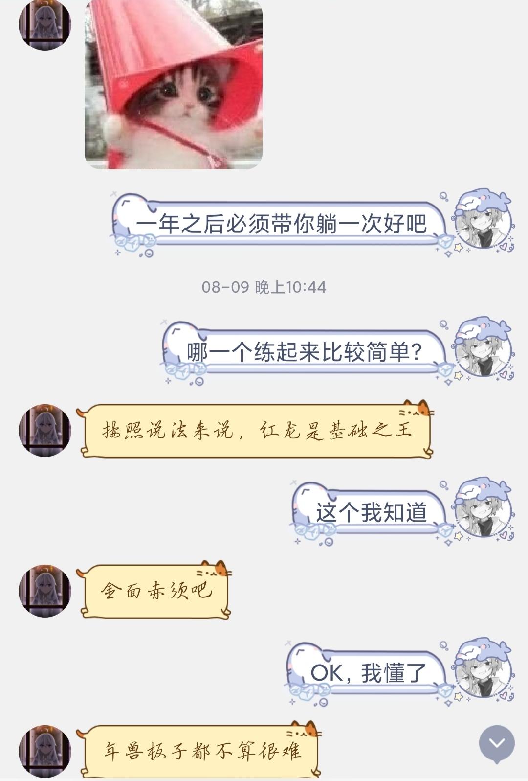 从今年8月初开始练boss板子,在风佬的帮助下已经会3个4星一个5星辽,也是非常艰难自闭了无数次,虽然有时也会失误,但勉强还是能够2拖3辽,风佬教了我很多细节,也经常会因为自闭而影响一天的心情,但冷静下来后还是会继续去练
