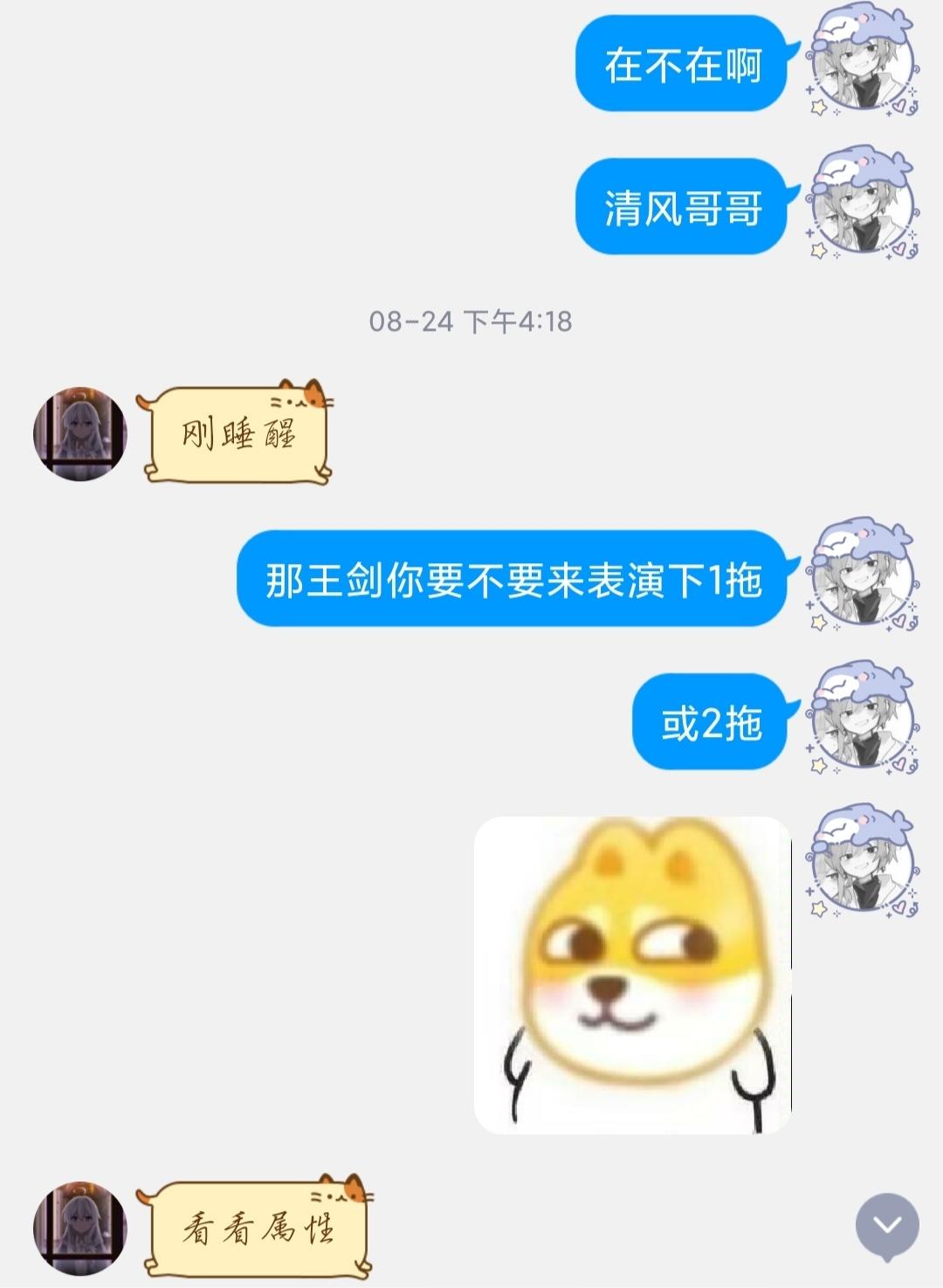 从去年8月初开始玩这游戏之前都是靠着好奇去慢慢摸索着玩,之前也想要退游,一直到12月初时进了一个家族也就是现在这一个,最幸运的是在里面认识了清风一些人他们对我都超好,当时什么都不懂都是他们带着我玩,自从清风拖过我一次4星王剑后,后面的周常也都一直是他拖我,都是只要我找车他就拖我