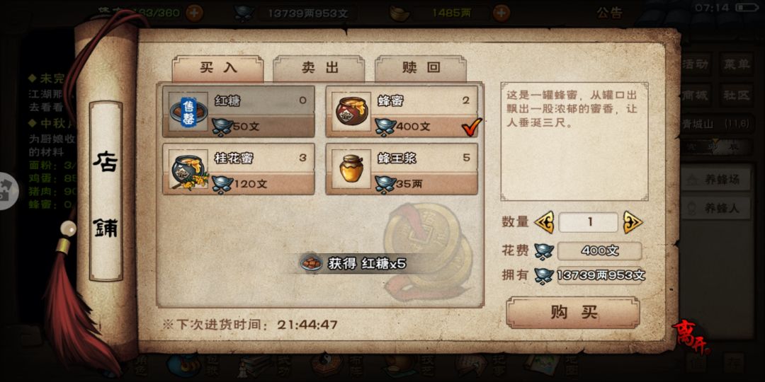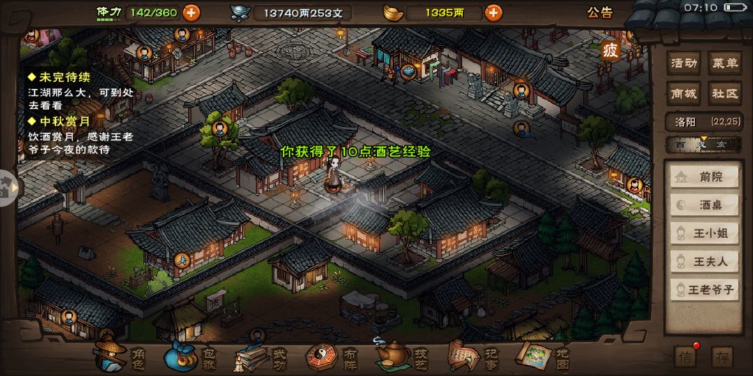 记得桌子喝酒吃菜,吃喝一次都是10点奖励(能喝5次,吃三次)