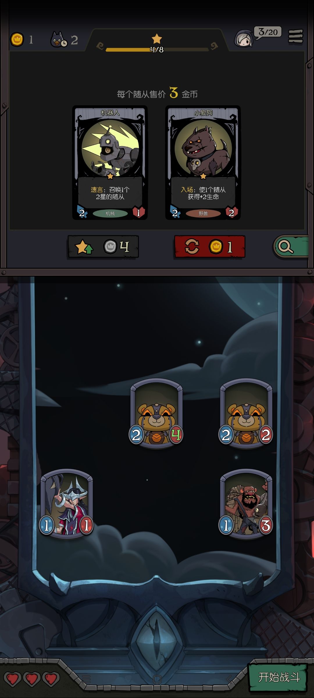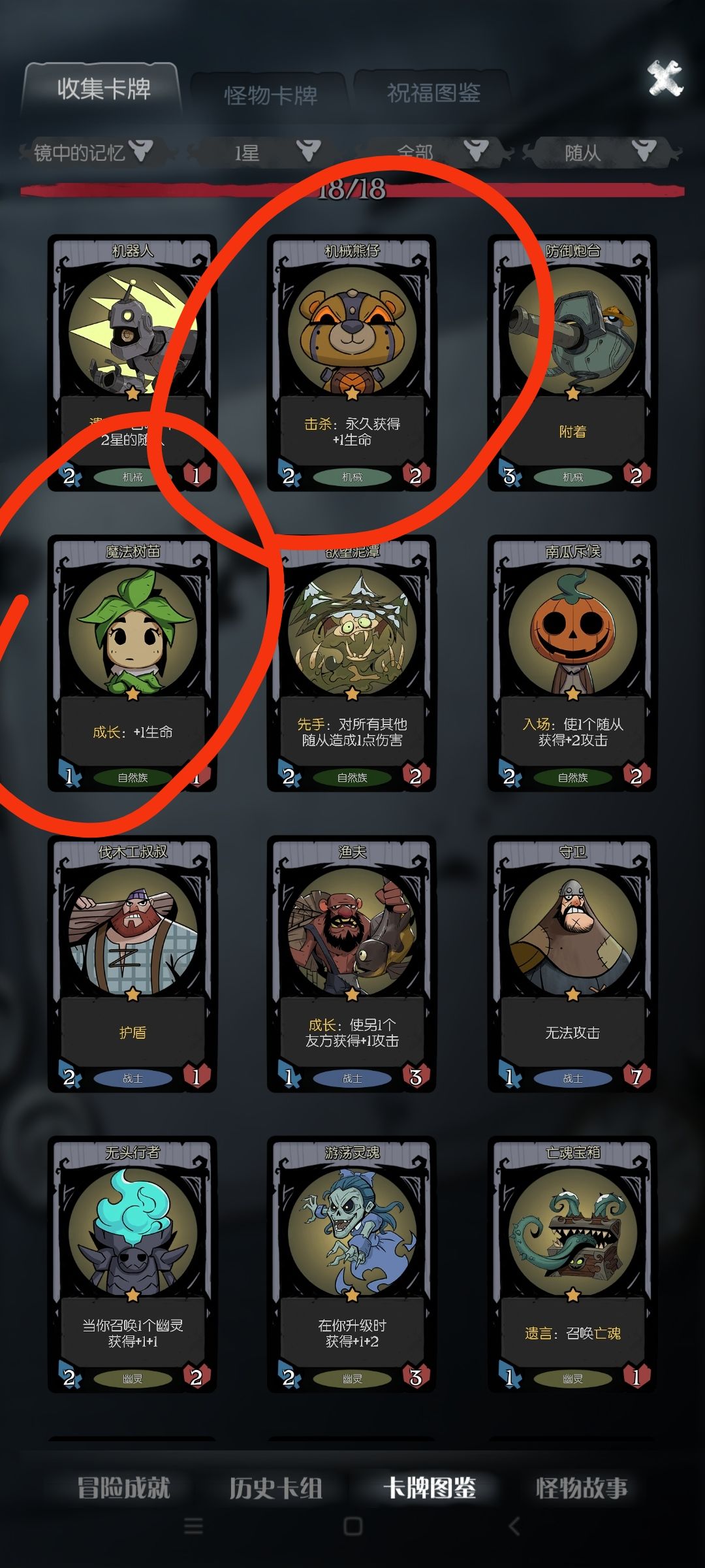 机械熊和魔法树苗无疑是优选,但是到底哪个更优?我认为是机械熊。因为它一回合可能会或主动或被动地多次增加生命(毕竟是我们前期的核心大爹)。