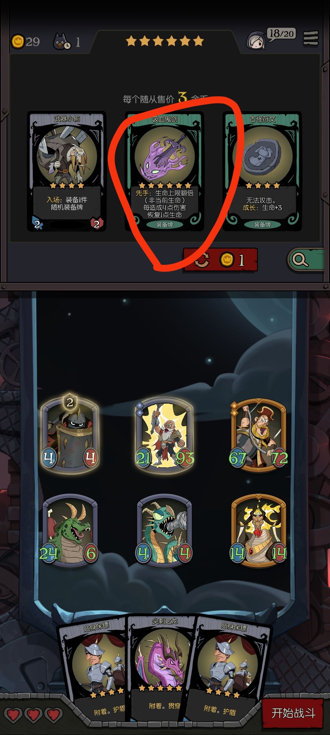 4.中期要记得找一找圣龙和保护之龙,这两条龙带盾,非常好用。升到6级以后就可以攒钱等好商店了。商店的话,我推荐买两个随从送一张奖券的店。