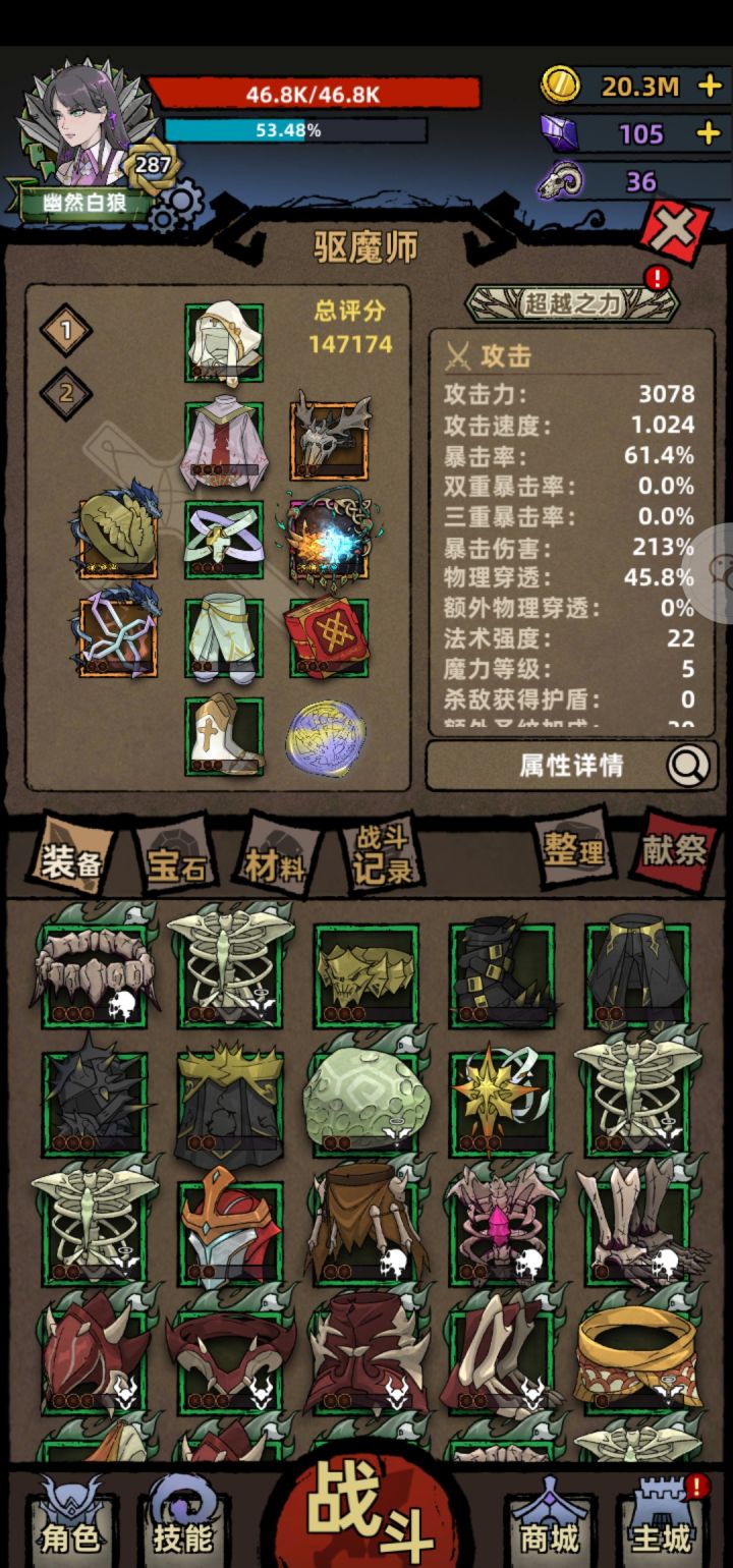 后期想加强,套装-1项链,火刑套凑齐唤醒堆格挡闪避,装备出防御(神之御座3件套),打宝石,唤醒超越把格挡闪避堆满,反正攻击暴击爆伤都不需要物理穿透50%很轻松,只要不被秒都有的打,堆免伤也可以,鹿头35%加被动50%可以用连发烙印堆(杀的快火刑回复圣纹就快,其他两个技能和连发烙印不要重复圣纹,减少圣纹消耗),基本可以保持满圣纹,卓越时间太短有空档CD长被动减伤不好叠不建议,也没必要百分百减伤,反正都是秒,不被秒就行。
