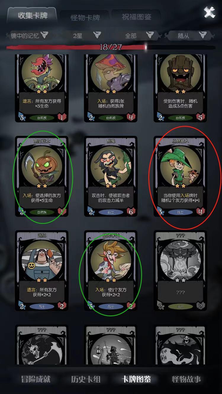 其他的一些带成长的其次,比如“机械熊崽”“渔夫”,其余的最好不要,成长性差,到时候还是要卖掉,只是为了凑一对金卡,特别是守卫自带盾的,和“欲望沼泽”全场打1是冲突的。