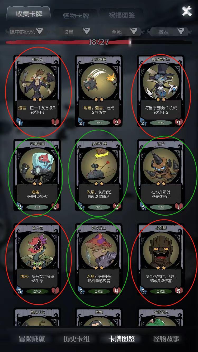 这里比较推荐的二星怪如图,红圈是提高战力的,绿圈是战力允许情况下看情况运营赚钱的,随从没放满就可以考虑上个绿圈站随从加赚钱。