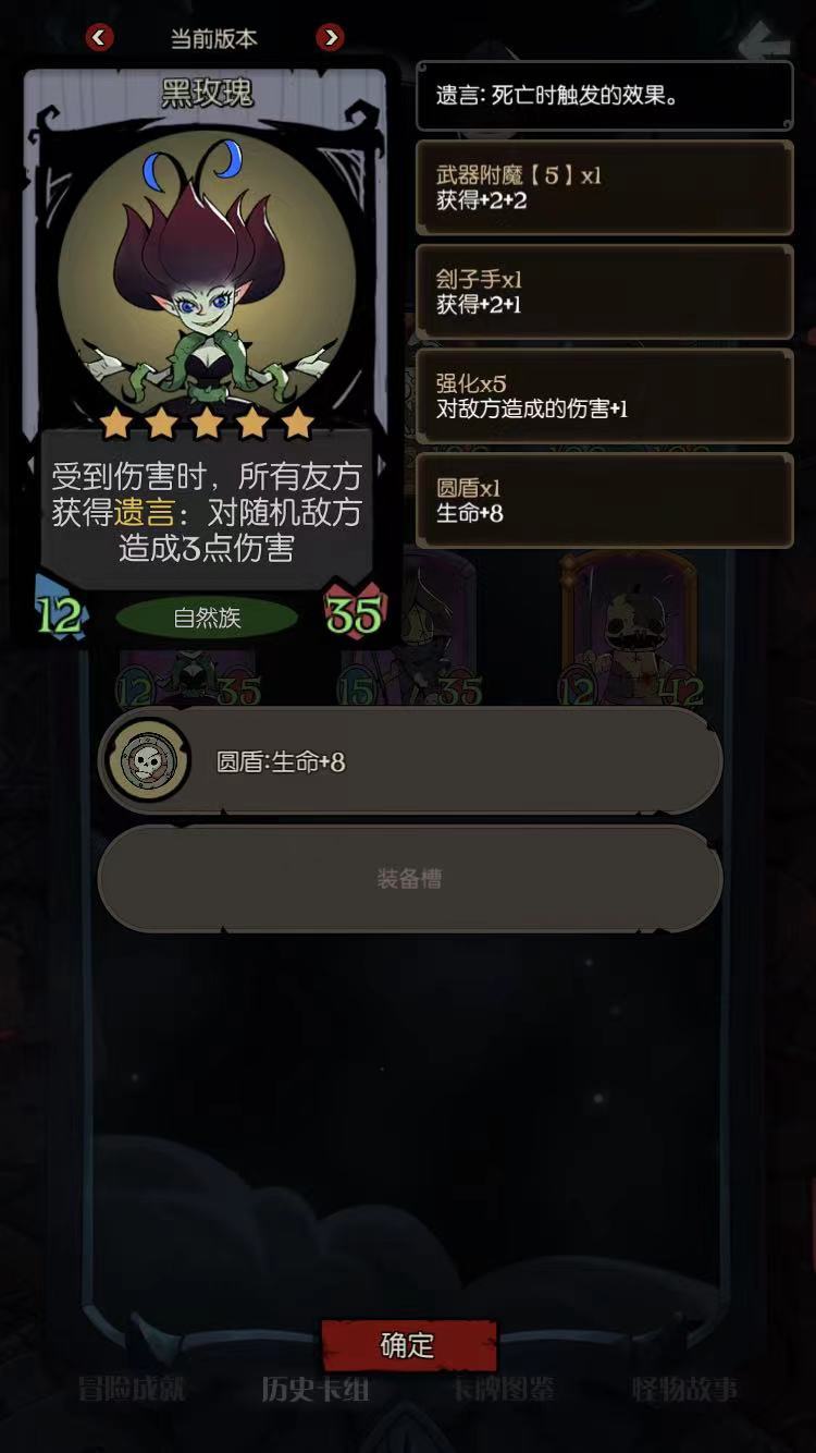 中期提高战斗力,以及怕把自己打死上这个,抬生命值,金复仇树精还可以抬战斗力,后期大多时候都是卖掉,也可以保留,靠卡面战力打boss。