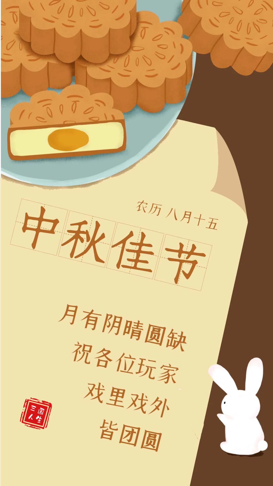 不论身在何处,都要和身边的人团团圆圆!《三国人生2》祝大家中秋快乐!