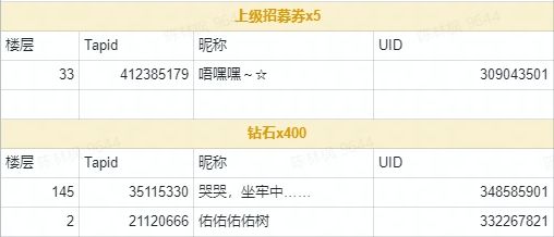 记得附上正确的UID哟 ᐕ)⁾毛豆将会在9月12日捞出1位制作人送上上级招募券x5,并向2位制作人送上钻石x400作为参与奖励!