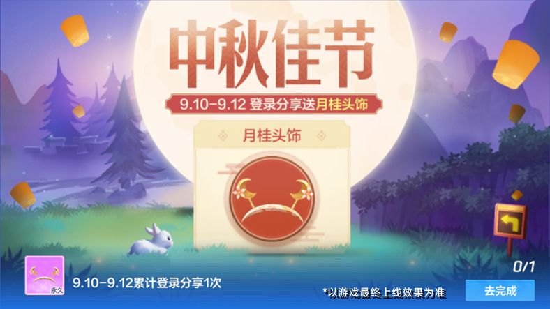 活动中心现已开启【中秋佳节】登录送头饰活动,活动期间车友们累计登录分享一次,即可领取月桂头饰。