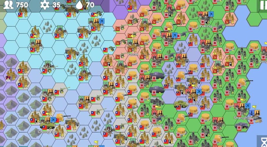 其他信息:可以自己创建地图,资源大概有这些:人口,石油,零件。士兵也有等级之分,在战场上打久了就会升级,可以在城市里回血,大城市可以生产士兵,装甲车等,还可以空降士兵。在地图的设置中可以设置事件,国家,阵营,地形,士兵,城市,国界……除了自己创建地图之外,还有系统自带的地图,用以当做关卡副本,玩家自制的地图也可以上传。根据不同语言还会相应的更换主页面背景。