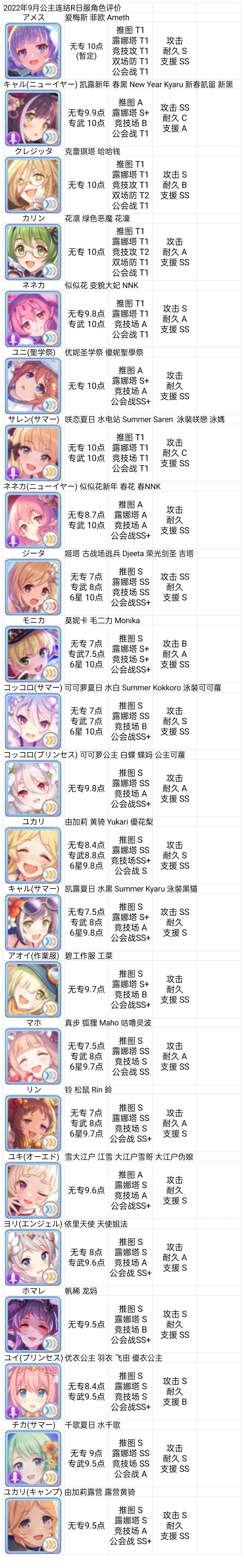 【节奏榜】2022年9月,爱梅斯成第九个限定节奏一姐,除输出与耐久全项目登顶【公主连结】