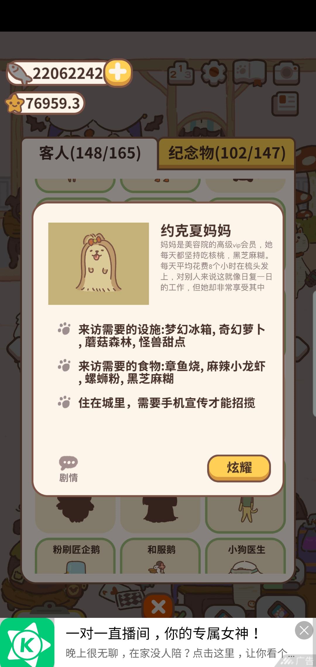 ✔其他三个攒鱼干买设施就花了挺久时间的,攒齐之后也没有立马招来,都是隔个一到两天才来的。